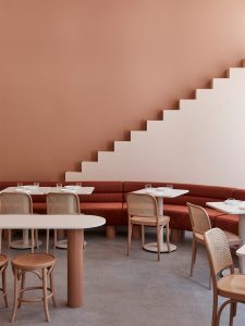 ژان پیر بیاسول معمار کافه بوداپست می گوید “با مطالعه سبک او برای کافه بوداپست در چنگدو، ما تجربه طراحی کافه ملبورن را تکامل بخشیدیم. با توجه به اشتیاقمان به هنر انتزاعی مدرن، طراحی و مهماننوازی، از طریق کاوش در فرم، عملکرد و رنگ، یک تجربه غوطهورکننده مانند گالری ایجاد کردیم”.